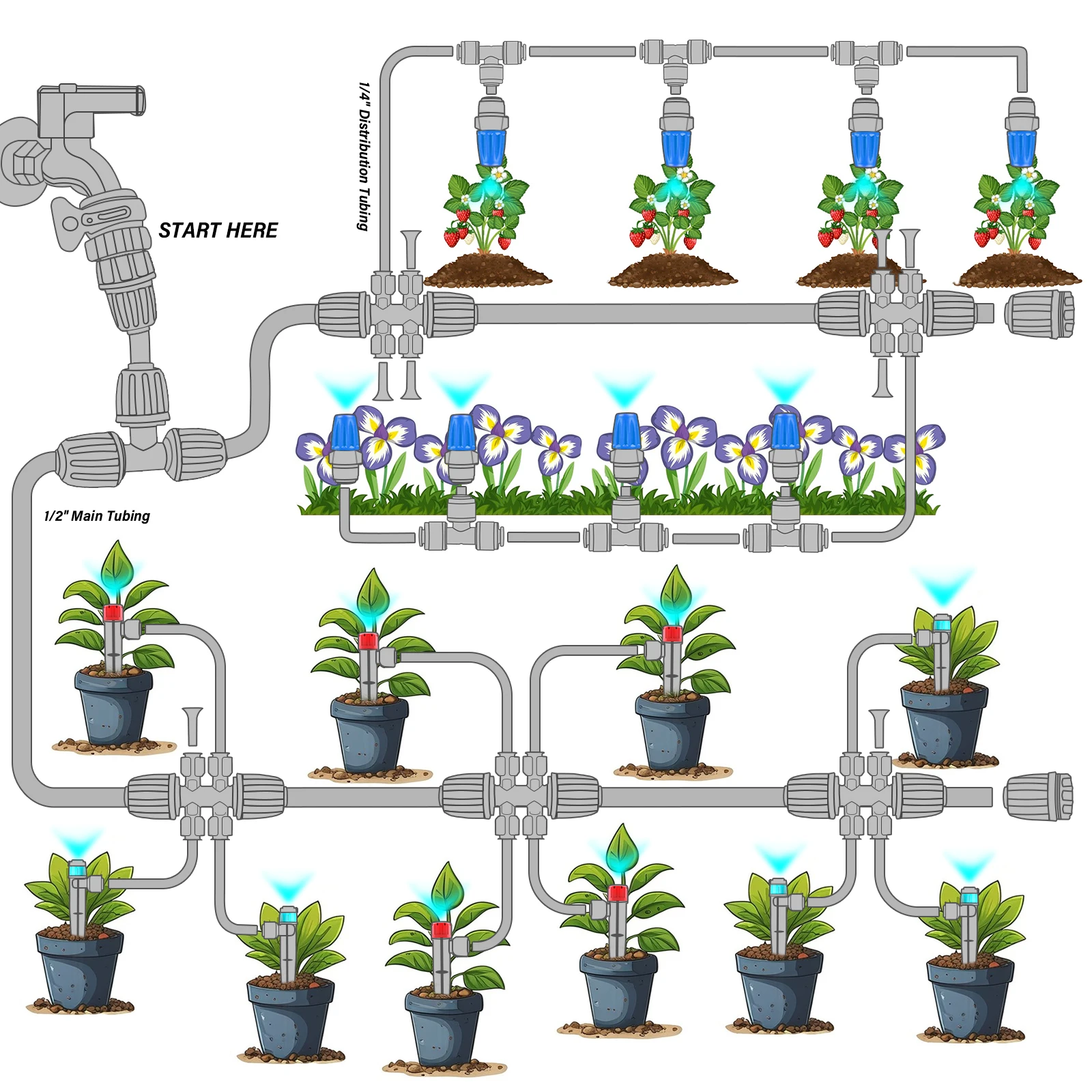 Kit de sistema de riego por aspersión Boquillas de conexión rápida para ahorro de agua Sistema de riego por goteo para jardín, huerto y vivero